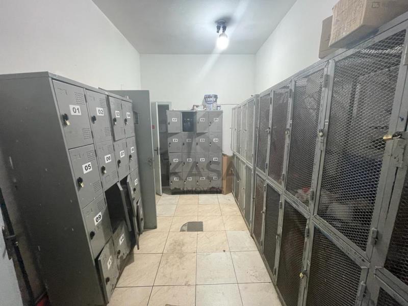 Área administrativa mobiliada com lavabo e vestiário com armários;